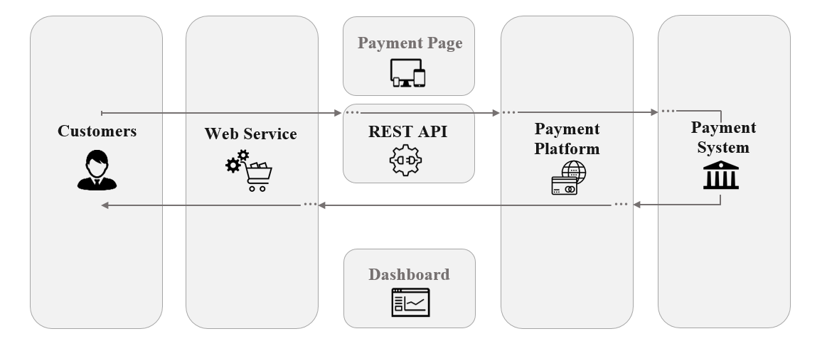 The merchant’s web service sends a request to the API end points when performing a payment. Our payment gateway receives the request, and server processes that request and redirects it to the third parties participating payment and responds with a callback containing the final payment result.