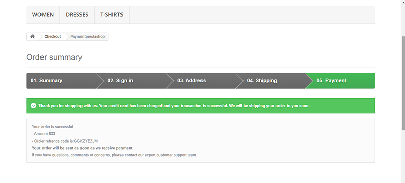Now, you will be redirected back to merchant’s website and you will see the success message