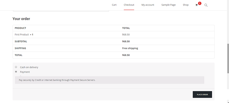 - Step3: And finally if a customer select "" as payment method and click on "PLACE ORDER", your customer will be redirected to the "" hosted payment page like below (Figure 14) where customer will fill the card details info and when the payment is done, the customer will be redirected to your online shop.
