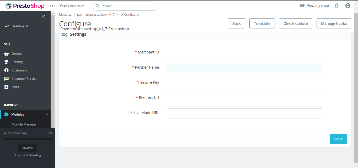 - Select paymentprestashop_v1_7.zip file and after installation click on configure.
