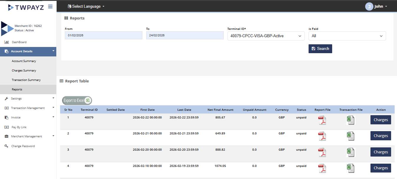 After Login you need to click on Reports section under Account Details tab in the left navigation bar of Merchant’s back office.
