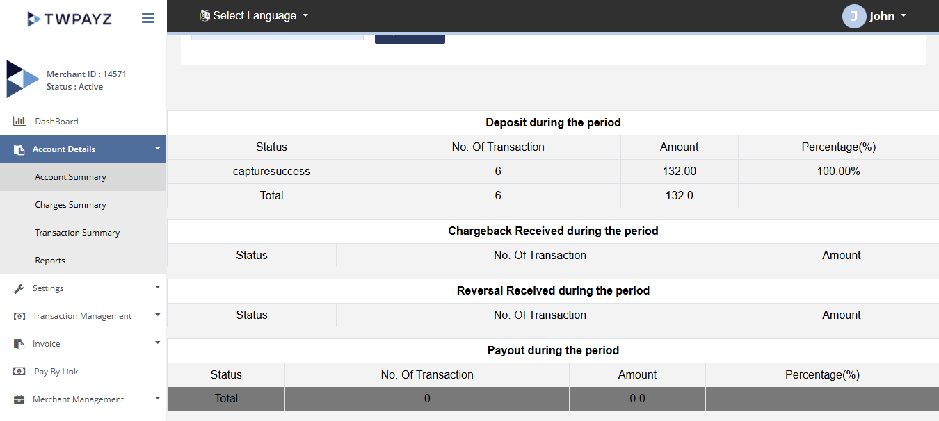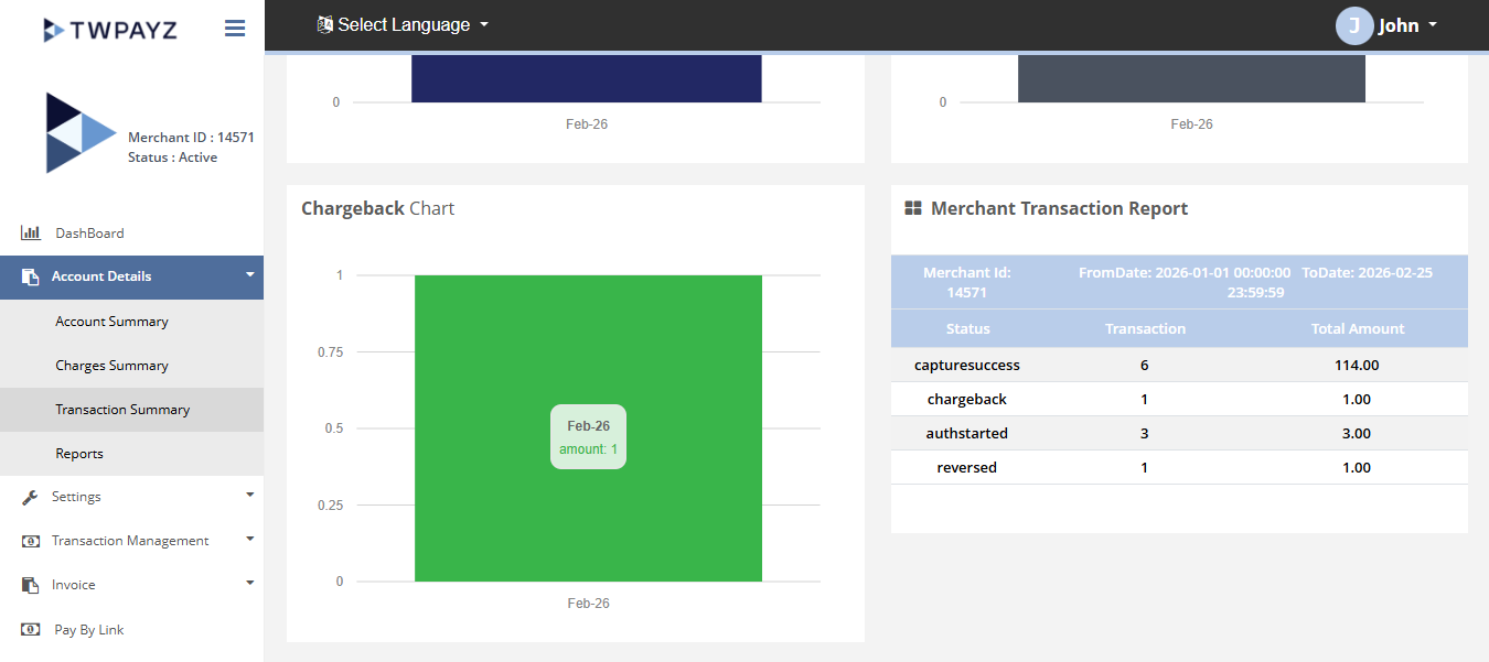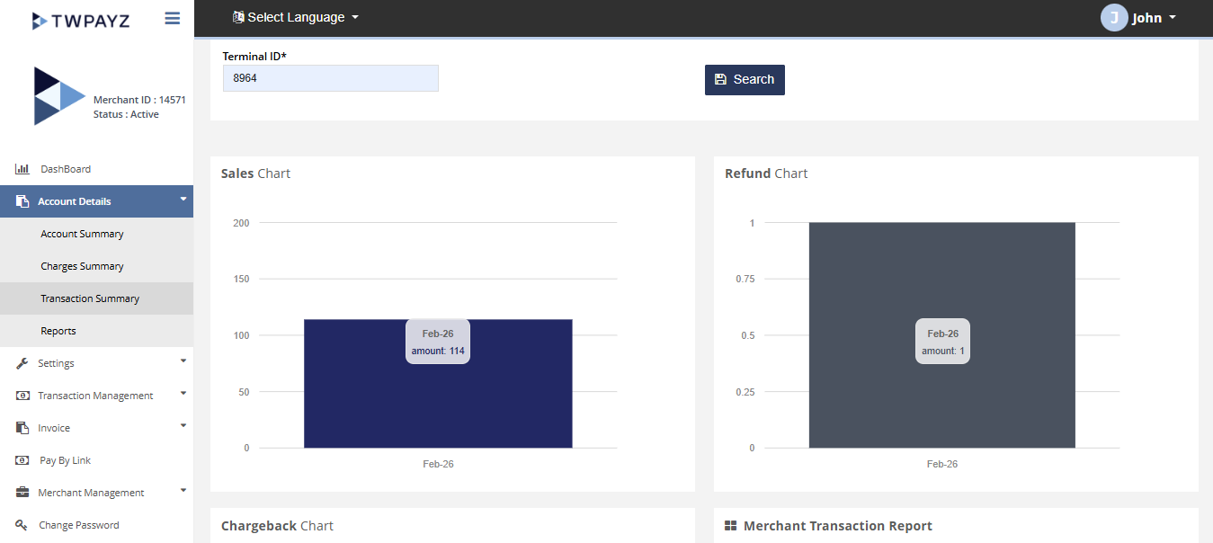After Login you need to click on Transaction Summary section under Account Details tab in the left navigation bar of Merchant’s back office.