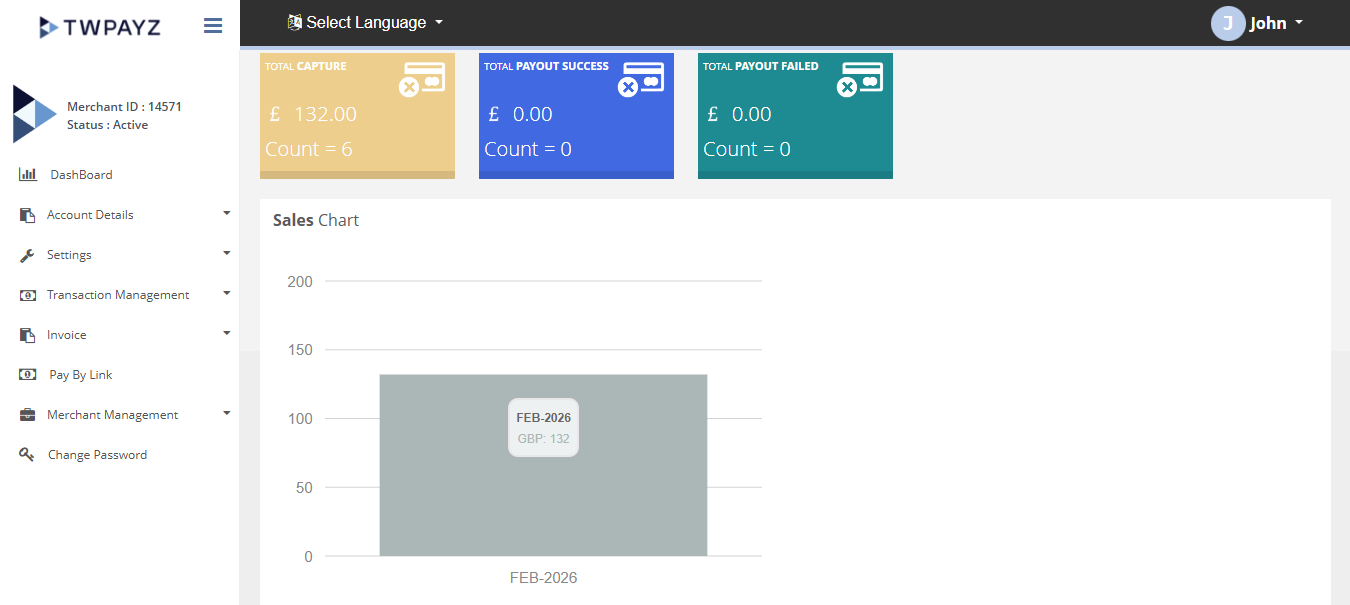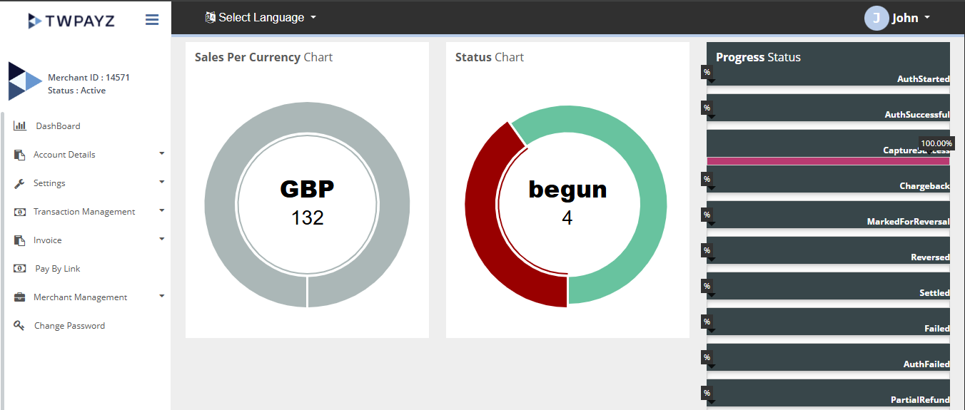 After Login you need to click on Dashboard section in the left navigation bar of Merchant’s back office.