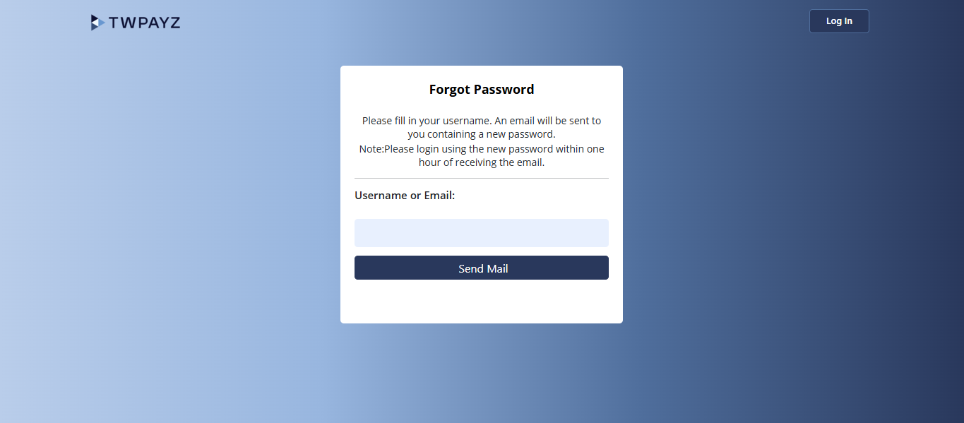 In case you have forgotten your password, you have to click on "Forgot Password" link it will display the page asking for a Username. After entering the correct Username, our support team will send you a new password via e-mail.