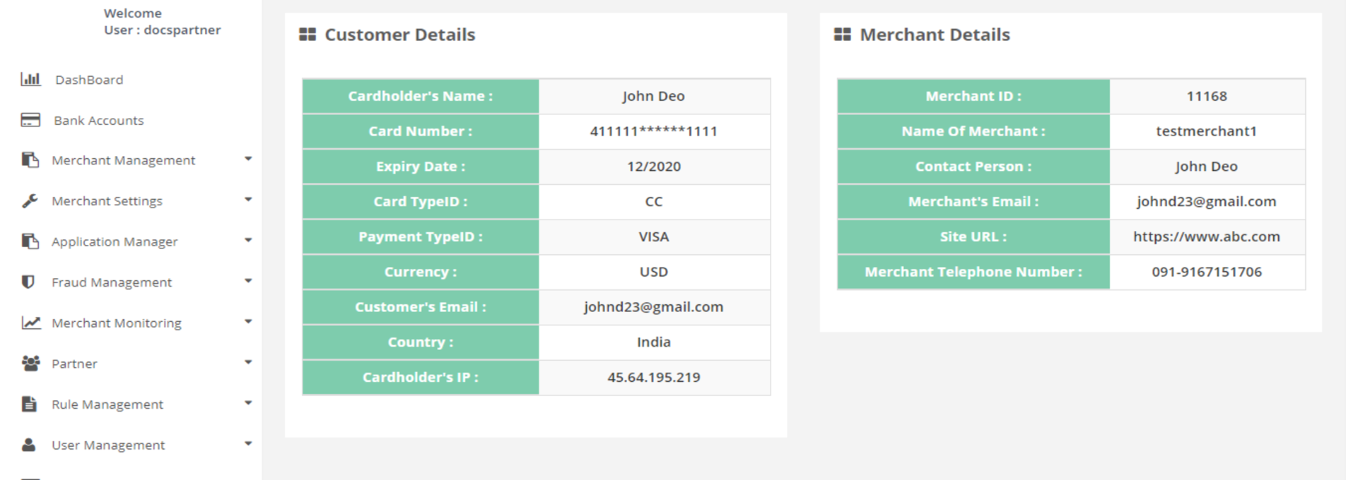 - Merchant Details
