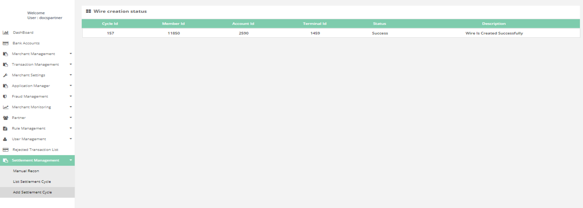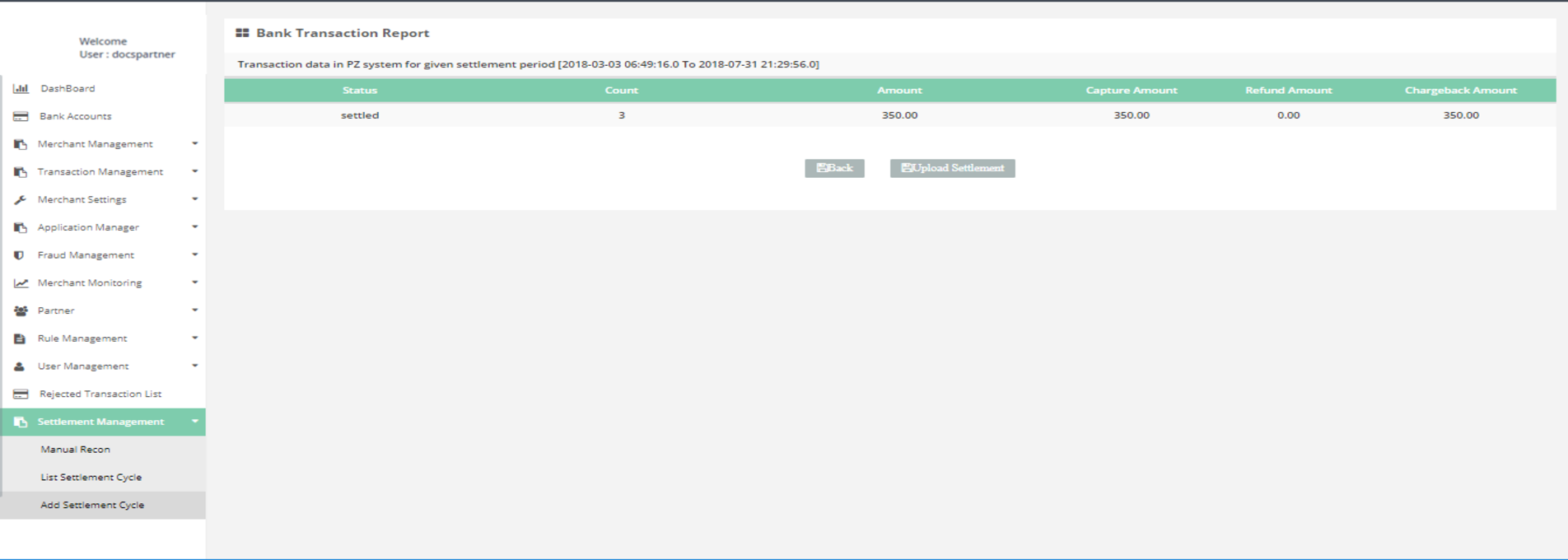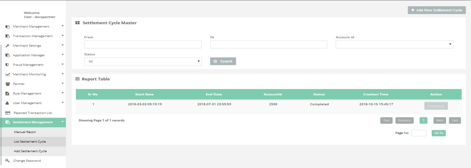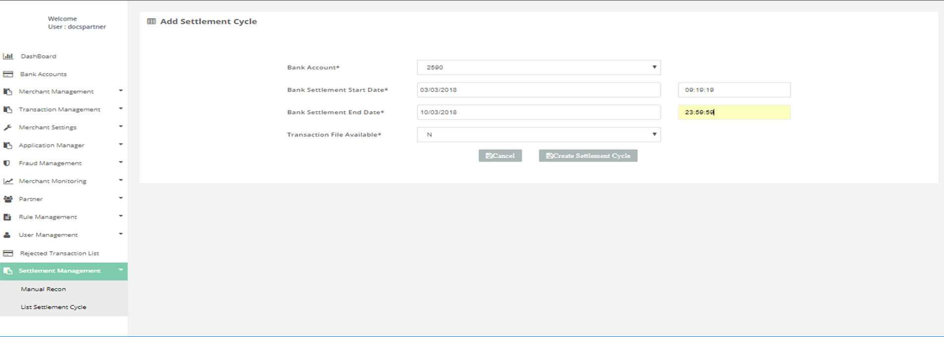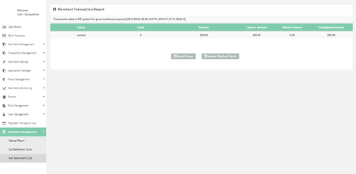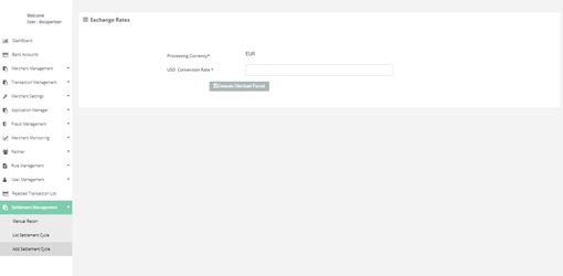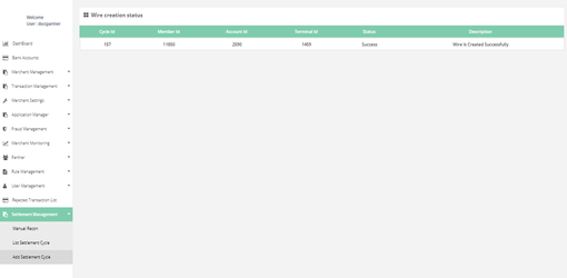 After login, you need to click on “Add Settlement Cycle" section under " Settlement Management" tab in the left navigation panel of Partner's back office.