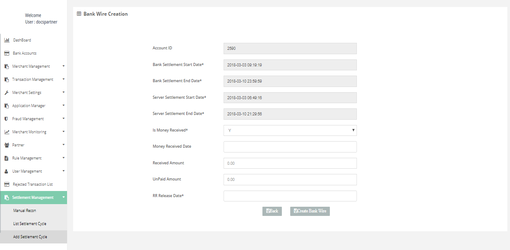 Settlement Management > Add Settlement Cycle