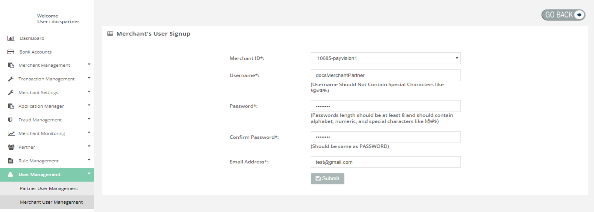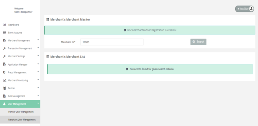 User Management > Merchant User Management