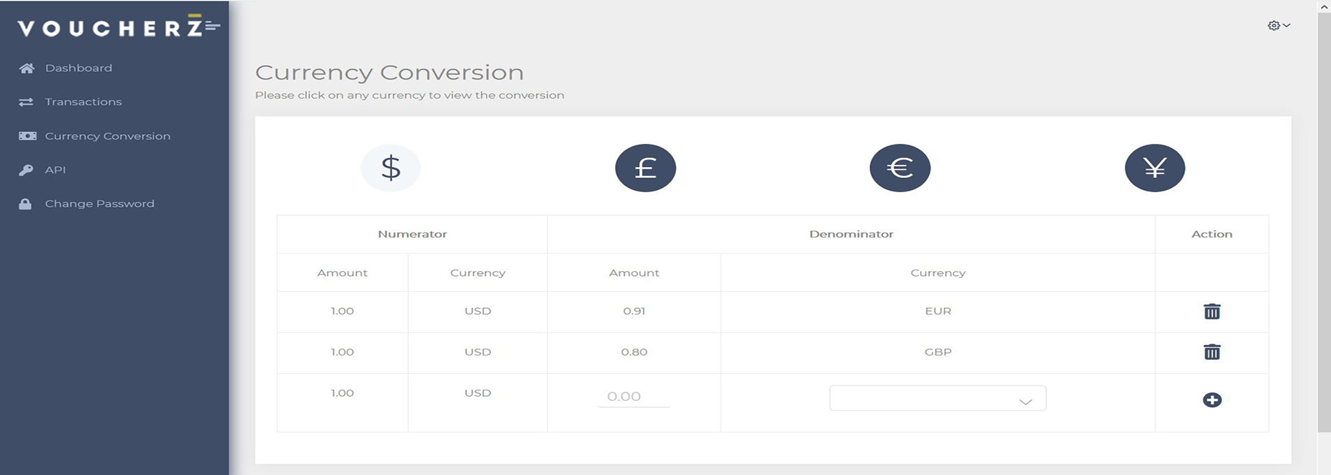 In this page you can map the currency conversion rate