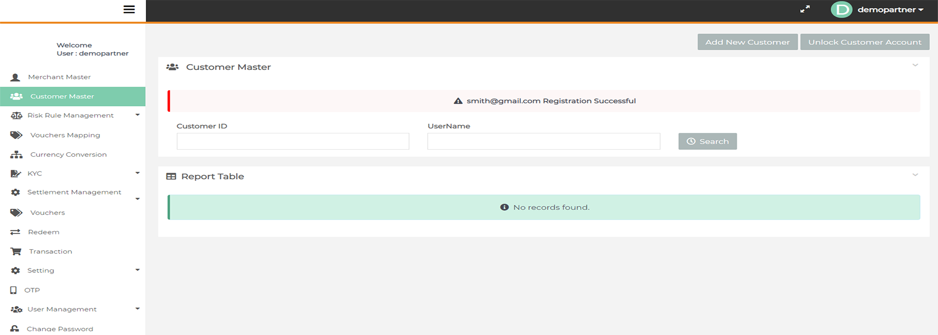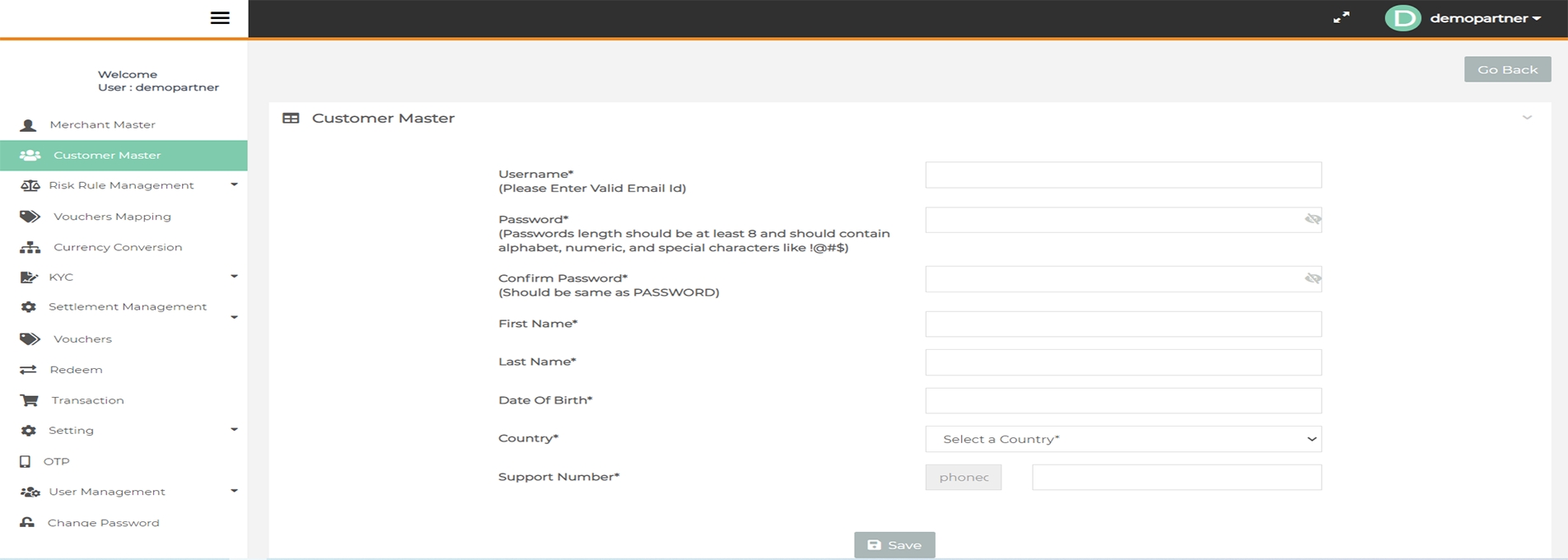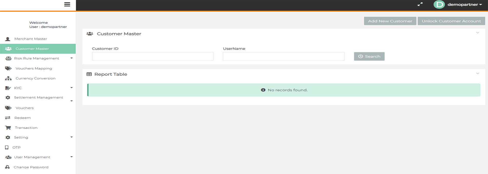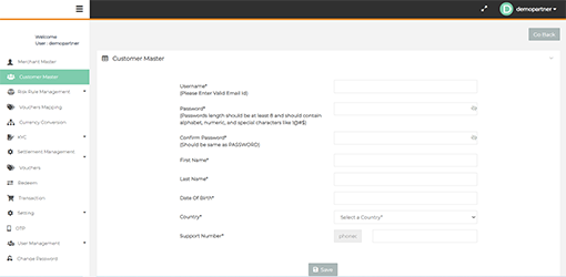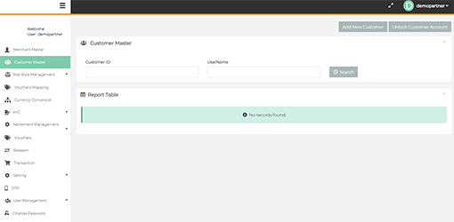 After login you need to click on "Customer Master" tab in the left navigation panel of Partner's back office.