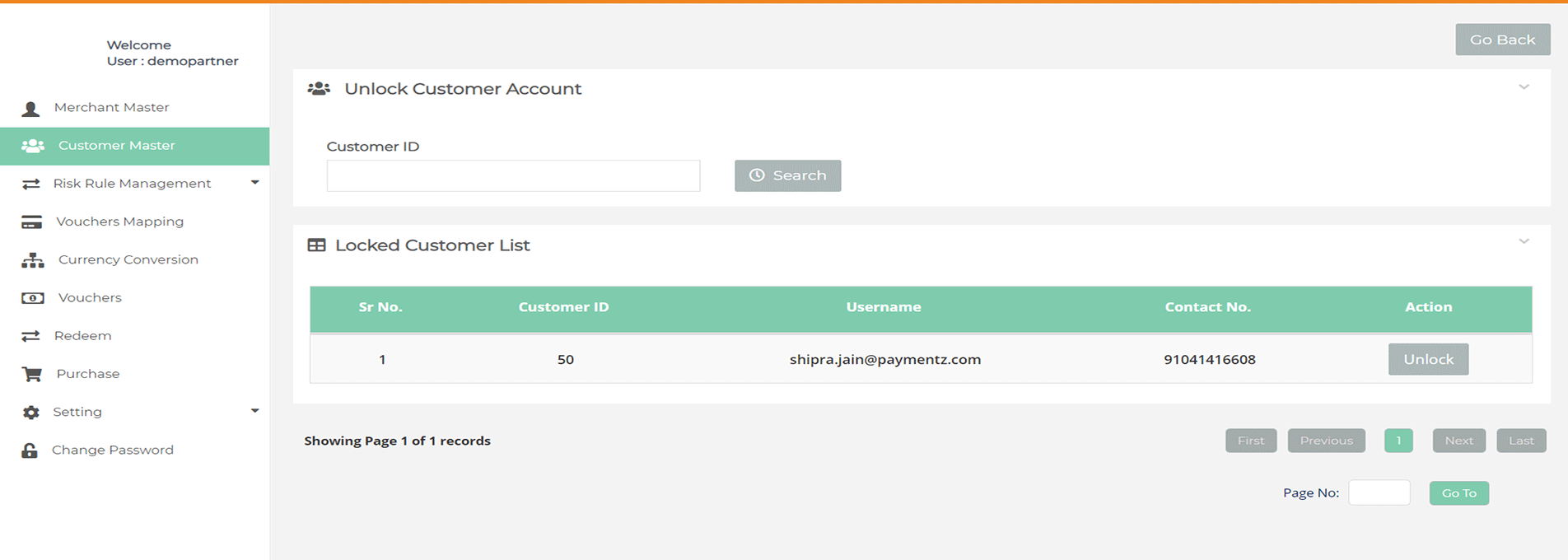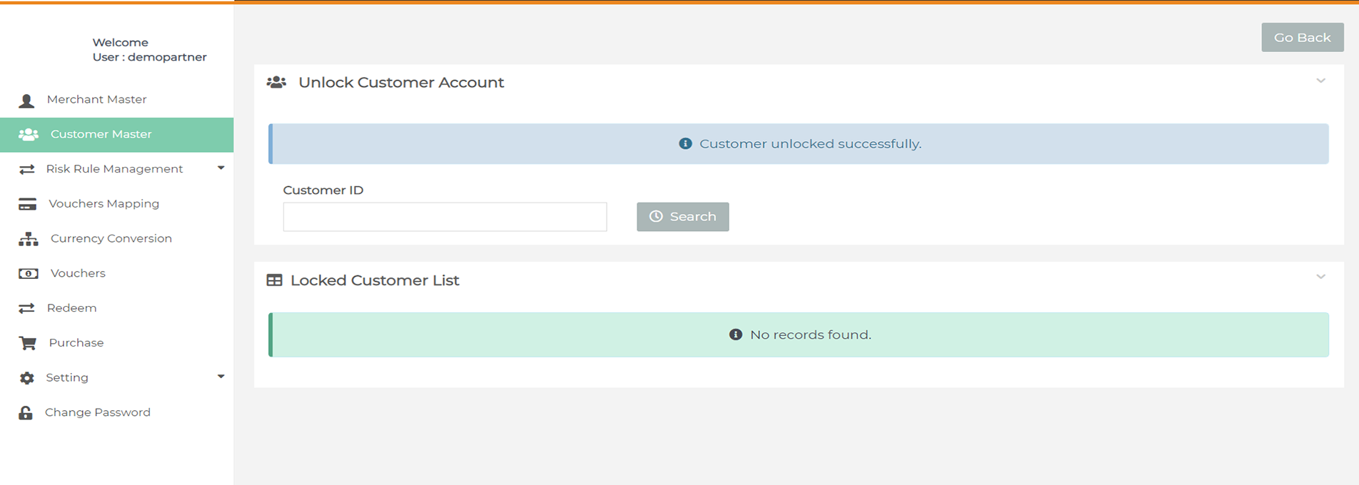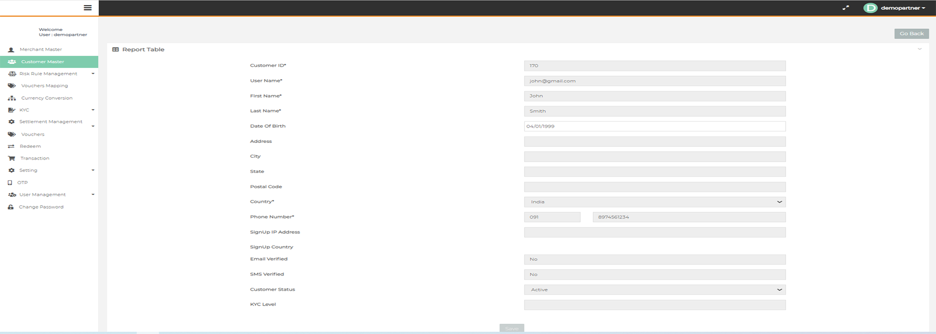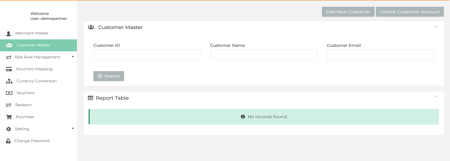 After login you need to click on "Customer Master" tab in the left navigation panel of Partner's back office.