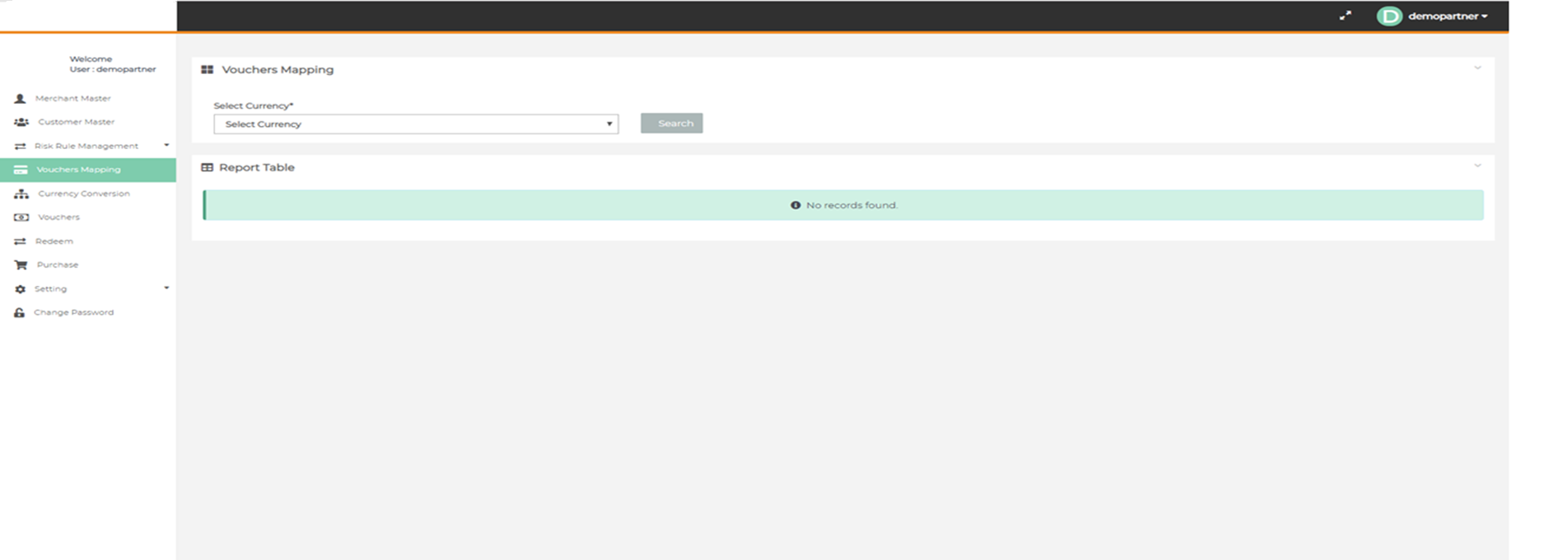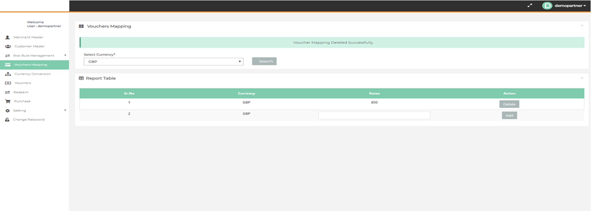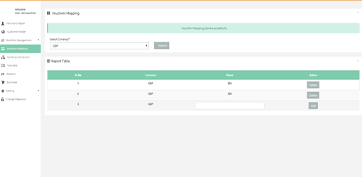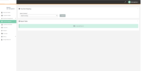 After login you need to click on "Voucher Mapping" tab in the left navigation panel of Partner's back office.