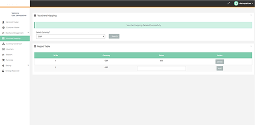 In this page you can Add/update/delete the Voucher rate per currency.